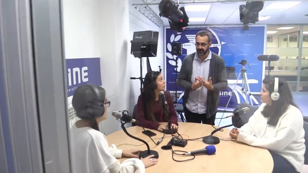 El Doctor en Comunicación y Director Académico del Grado en Periodismo y Redes Sociales, Santiago Salazar, destaca el papel de los docentes que “trasladan sus conocimientos” a la vez que “son profesionales que valoran la comunicación”. El Director de Informativos de RTVE Cantabria, José Antonio Machín, también forma parte del equipo docente del Grado en Periodismo y Redes Sociales. “Los profesores son reputados periodistas en activo, directores de medios de comunicación y de programas de radio y televisión”, de esta manera presenta Santiago Salazar al equipo docente del Grado en Periodismo y Redes Sociales, a lo cual añade que “todos ellos tienen un importante bagaje profesional que trasladan a los alumnos en el aula”. Olga Agüero y José Ángel San Martín, durante una tertulia de actualidad en Cadena SER. El Director Académico también añade que “los alumnos tienen la oportunidad de adquirir una valiosa experiencia profesional”. Esto se consigue a través de la metodología de CESINE que se enfoca a los contenidos prácticos en todo momento y prepara a sus alumnos para las necesidades del mercado laboral. Las clases tienen mucho contenido práctico, como en este caso en el que Fermín Mier, Director de Programación Matinal de Cadena SER en Cantabria. Santiago Salazar también insiste en la evolución de la profesión periodística al asegurar que “al trabajo más tradicional en medios de comunicación, transformado hacia el mundo digital en la mayoría de los casos, se unen también las agencias de información, la comunicación corporativa, la gestión y organización de eventos, los gabinetes de prensa, la comunicación audiovisual, el marketing digital y todas las “nuevas profesiones” que se han generado a raíz del impulso de la digitalización de la información y las redes sociales”. Jaime del Olmo, presentador de "Las Mañanas" y Deportes COPE Cantabria, durante una actividad de radio con alumnos del Grado en Periodismo. El Grado en Periodismo y Redes Sociales de CESINE, considerado uno de los más modernos de España, permite a los alumnos realizar proyectos periodísticos desde el primer curso, de la mano de sus profesores, reconocidos profesionales en activo de diferentes ámbitos de la comunicación. Una formación eminentemente práctica que implica a los estudiantes en actividades y proyectos de radio, televisión, redacción, redes sociales o realización audiovisual que desarrollan las competencias y habilidades requeridas actualmente a un buen periodista. Carlos Sánchez, Jefe de Deportes de Radio Marca Cantabria, durante una de sus clases en el Centro Universitario.